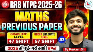 RRB NTPC Maths Previous Year Question Paper | RRB NTPC Maths Classes 2026 | NTPC Maths By PrakashSir