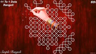 Simple Rangoli with 11 To 1 Dots | 11 Dots Chukkala Muggulu | 11 Dots Sikku Kolam | 11 Dots Kolangal