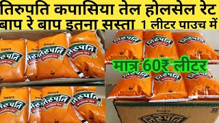 तिरुपति कपासिया तेल 1लीटर पाउच आज का नया ताजा भाव |Tirupati kapasia oil 1 litre pouch new rate today