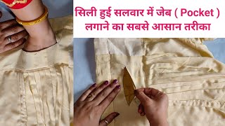 पहले से बनी हुई सलवार में पॉकेट कैसे लगाएं / How to Attach Pocket in Ready Salwar सलवार में जेब बनाए