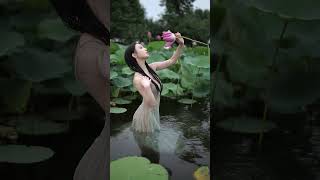 Alluring Beauty in Water with Lotus Leaves 🌊🌿 #WetLook #SeductivePose