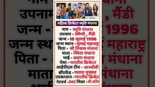 “स्मृति मंधाना का परिवार कौन है? | Women Cricketer Biography 2025”#shorts #trending #viral #ytshorts