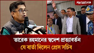 তারেক রহমানের স্বদেশ প্রত্যাবর্তনে যে বার্তা দিলেন প্রেস সচিব | Tareque Rahman | Shafiqul Alam