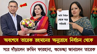 তারেক রহমানের নির্দেশে নির্বাচন থেকে সরে দাঁড়ালেন রুমিন ফারহানা | Tareque Rahman | Rumin Farhana