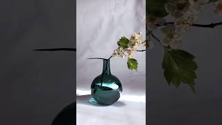 Emerald Green Handblown Vase made by me, with Hawthorn branch ✨ #HomeStyling #blownglass #hawthorn