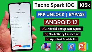 TECNO SPARK 10C KL5K FRP BYPASS (Android 12) -100% WORKING WITHOUT PC- Phone Apps Not Open & Disable