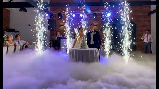 Wiatraki iskier. Wystrzałowy tort weselny. Ciężki dym Wesele 2023. Fontanny iskier Saline Inowrocław