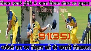 Vijay Hajare Trophy || Vijay Shankar make a unbeaten 91 runs against Bihar 🔥🔥
