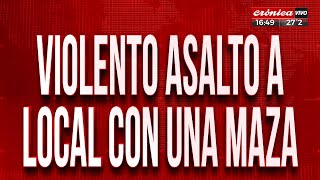 Violento asalto a local con una maza