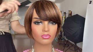 Ombre Short Human Hair Wigs With Bangs For Black Women Pixie Cut Mirthful Wig