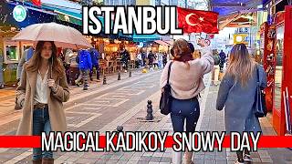 🇹🇷 Magical Istanbul Snowy Day 2025 | Explore Kadikoy, Bahariye 4K Walking Tour | Cafes, Bars, Market