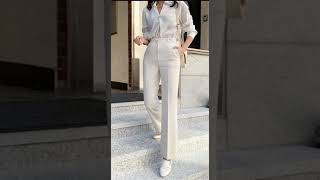 Elegant Women Printed Two Piece Suit Sets Spring Autumn V Neck Long Sleeve Shirt Top & Long Pants...