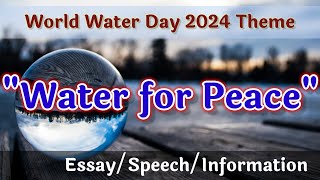 World Water Day Theme 2024 : Water for Peace | Essay |Speech | Information |Essay on World Water Day