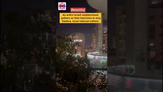 An entire Israeli neighbourhood gathers on their balconies to sing Hatikva, #israel national anthem.