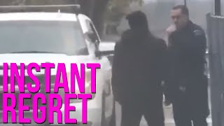 guy INSTANTLY REGRETS punching k9 cop (bork bork nom nom)
