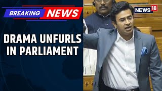 Tejashvi Surya Slams Opposition As High Drama Erupts in Parliament During Motion Of Thanks | News18