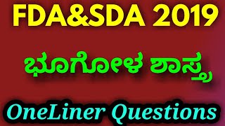 FDA and SDA 2019 || ಭೂಗೋಳ || Geography ||OneLiner Questions
