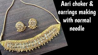 Aari choker making at home | aari choker&earrings making with normal needle