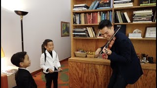 7 year old busking violinist meets his hero