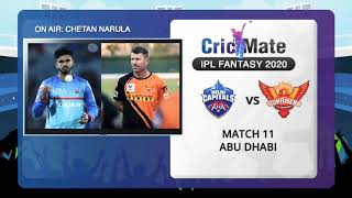 Match 11 - DC vs SRH Dream 11 | IPL 2020 Match preview | Fantasy 11 Prediction | DC v SRH Playing 11
