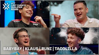 "Everyone knows it's DO OR DIE" | Babybay catches up with Klaus, Runi and Tacolilla | #VALORANTLCQ